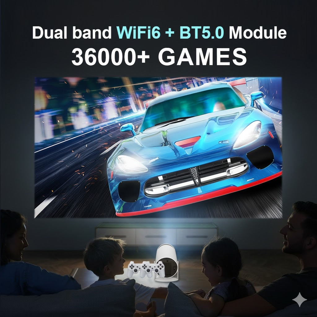 Experience the ultimate retro-gaming night with a compact console that connects effortlessly via WiFi 6 and Bluetooth 5.0. Project your favorite titles in stunning clarity and enjoy over 36,000 games with smooth performance, fast loading, and wireless controllers the whole family can enjoy.